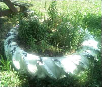 No need to make a special trip to town for flower pots though; just about everything you have purchased before came in a container, and almost anything will hold a bouquet, from a hollowed-out log to plain plastic buckets. This is where a splash of paint can make all the difference in the world. If you already know that you’ll be planting lavender in that old coffee can, paint the outside of that repurposed can a vibrant orange or yellow for contrast. For a more uniform, elegant, and versatile look, paint all the containers you plan to use black, white, or green. The pinks, purples, yellows, whites, and reds of any bloom will look stunning against the simplest painted repurposed canister. A favorite planter, of course, is the old worn-out tractor tire.