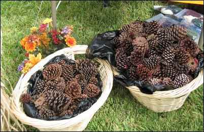 Pine cones can be waxed and used as fire starters, decorations, or crushed and molded into presto-log shapes to use as fire starters.