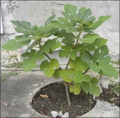 My case for fig trees fell on deaf ears, but I persisted, finally wearing down Donnie’s resistance by pointing out that, serendipitously, the jackleg carpenter/landscaper who formerly owned our house had poured a cement border alongside the driveway into which he had excised perfect circles about 1.5 feet in diameter, presumably for planting flowers. These were languishing unused, a haven for weeds, considerably increasing the quantities of Round-up we were required to purchase. The salient point, the clincher to my ceaseless yammering about fig trees, was the fact that the holes ran along the SOUTH side of our house, just what a fig tree needs for optimal sunlight. Tada!