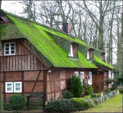 Moss can also be used in creating “green roofs” because moss is lighter and doesn’t require any soil substrate, and since it absorbs water like a sponge, irrigation is not necessary once the moss is established. It is also a better choice for planting on sloping roofs, since it is lighter and doesn’t require soil. The moss on your green roof will insulate to reduce costs of both summer cooling and winter heating bills, providing a habitat for wildlife such as beneficial insects, birds, bees, and butterflies. Mosses collectively provide more carbon offset than all the trees in the world, provided we don’t pick it all out of our forests.