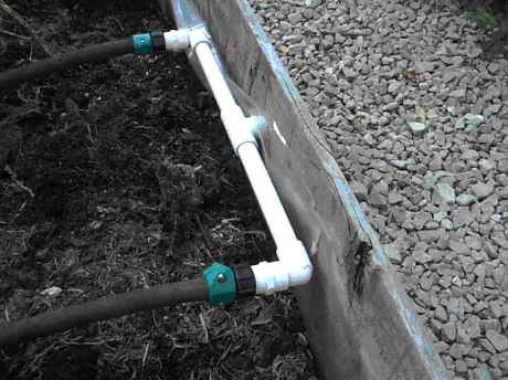 Figuring there had to be a better way to water a garden than tossing hose like spaghetti, I came up with my $8.16 (sales tax not included) irrigation system. I combined soaker hose, ½-inch PVC pipe, and connectors to make an irrigator that works in either raised or standard gardens. It’s a cinch to put the feeder pipes under ground (or gravel, in our case), which keeps everything tidy and impresses the daylights out of visitors.