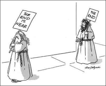 See, there have always been end-of-the-worlders, probably since, like, the beginning of the world. Preppers, I reasoned, were just another version of the cartoon guy pacing the streets holding the sign proclaiming, “the world is ending.”