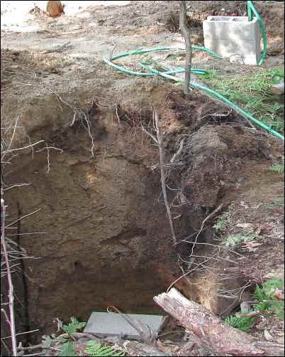 We returned to the site a day or two later and the machine had come and gone. We had four good holes at the corners. The only thing was that we’d taken the center stakes out along the 20-foot dimension to make clearance for measuring the corners and had never put them back. So the operator dug only where there were stakes and didn’t dig the centers. Shoot! Moving day was fast approaching and this meant we really had to concentrate on the corners and just block those sections up temporarily later, right on the ground surface. (Isn’t that what I said I didn’t want to do?)