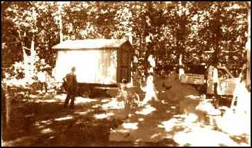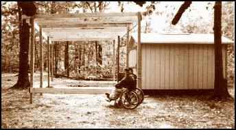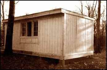 In August of 1999, we made our first improvement. We bought an 8 x 12 wooden garden shed from Mr. Green up in Waynesville. He has a huge selection of well-built sheds and he will deliver them to your site. He brought ours on a huge flatbed truck and in less than 30 minutes it was all set up next to our electric pole and 30 feet or so from our pole arbor. It wasn’t very big but it gave us plenty of space to store our equipment and it gave us a warm dry place to sleep if the weather went bad.