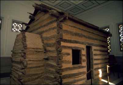 In Kentucky, at the Abraham Lincoln Birthplace National Historical Park there is a replica of the cabin where Abe was born. There is also a replica cabin in Knob Creek Farm in Hodgenville where the family moved when Abe was two. The family moved again more than once, but each time inhabited a small cabin. So it is reasonably certain that until he was a young man, Abe Lincoln, his mother Nancy Hanks Lincoln, his father Thomas and sister Sarah lived in a log structure about 300 feet square with a large fireplace at one end.
