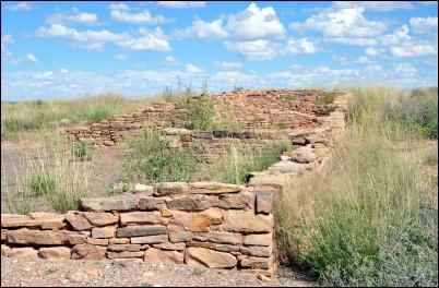 Standard history books tell us that the people in Puerco (probably not their name for the village!) were farmers. In addition to corn and chilies, they grew cotton, which they used for basket making. They grew tobacco but smoked only at night, fearing that producing smoke in the daytime would divert rain. The petrified wood made superb arrows and was used for trading. The house structures were built above ground (earlier groups built subterranean dwellings, probably for protection from predators and the heat) and were centered on a plaza. It could be said that in terms of communalism, the ancient Puerco residents were better organized (more complex) than modern-day Amish, who tend to live in separate family units with no centralized meeting place, not even a church.