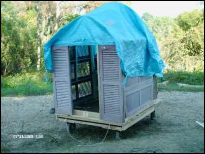Notice, we still haven’t addressed the issue of no barn/no fence for our impending free-range brood. “Not to worry… we can build a moveable chicken house,” I quipped in response to Ruth’s growing concerns. “How hard can that be, right?” We outlined our plans on the way home, while wondering why the chickens were riding with their mouths open but not making any noise. We later learned that’s how chickens deal with heat!