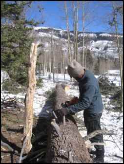 I’m not necessarily a tree hugger. But I confess I have hugged a tree or two. I value them. And well I should. They are valuable! But I also use my trees. First of all, for building. We live in a log cabin. We harvested our own logs. From the trees on our property, we have fuel. Living at 10,000 feet elevation as we do, and relying on a wood stove for heat, we go through a fair amount of firewood. And with that, our home is cozy and warm, even when the outside temperatures fall to 20, 30 or even 40 below zero. Every breakfast is cooked on the old-fashioned cook stove, which also is reliant on our wood source. Our trees provide shelter, shade, windbreak, privacy… and yes, beauty.