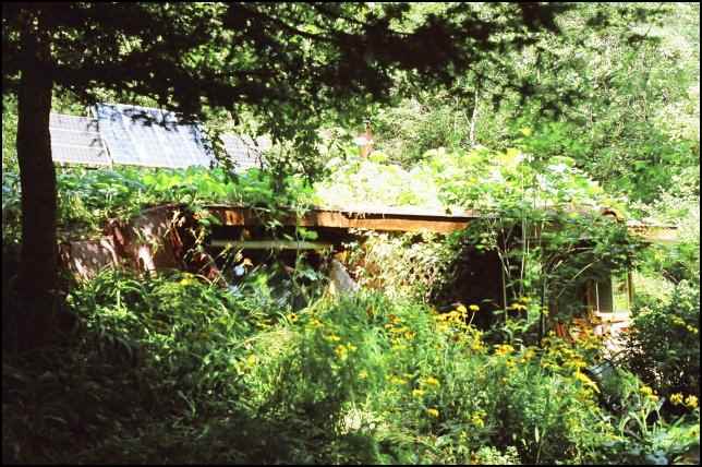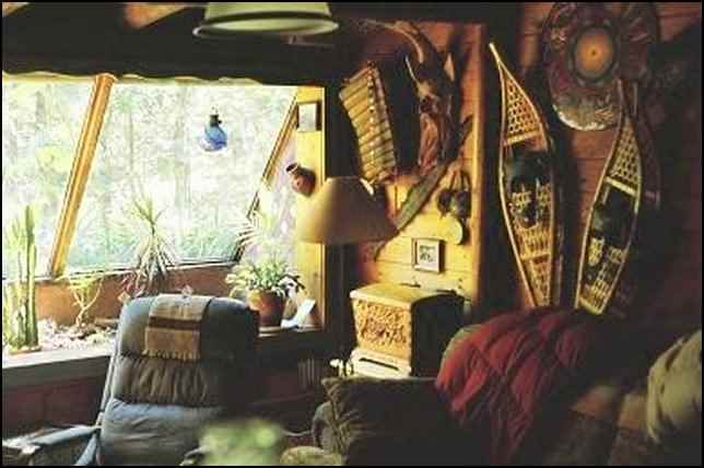 Behind the house, proper is the garage/workshop/office: Bruce’s domain. This is a reasonably “mainstream” structure, the office part being the newest section with a wall of windows overlooking a wooded ravine. A small wood stove keeps it toasty in the wintertime.