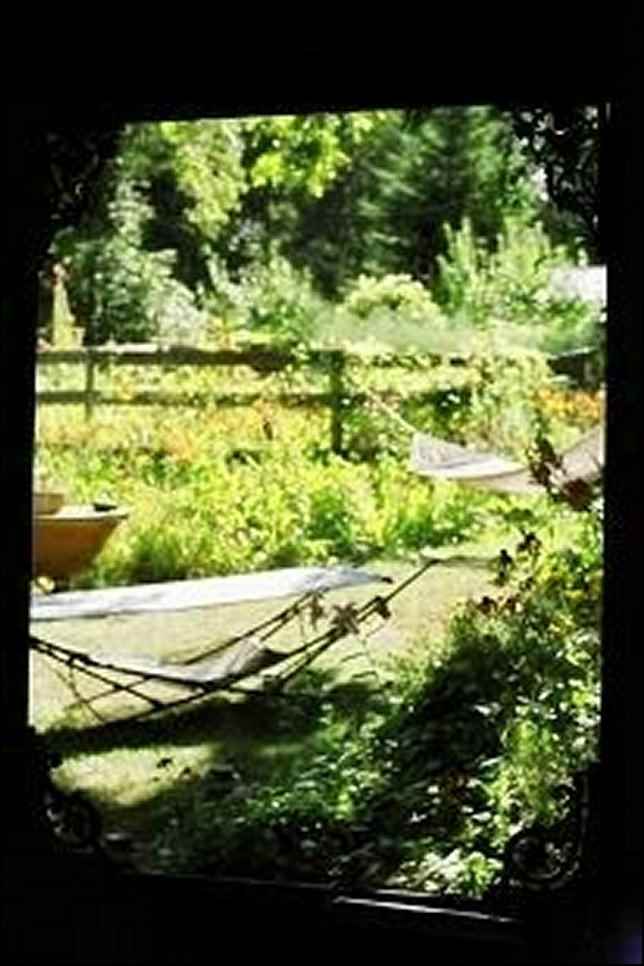 Here in the middle of this forest is a clearing that looks not so much “cleared”, as “gently borrowed”. A vegetable garden naturally fenced and gated, produces wildly and with abandon, punctuated with riots of flowers. An elderly apple tree shelters a solar shower, sink, and soap. Next to the garden is a well-placed hammock with a view of both the garden and the forest which lies just beyond a wide edging of native flowers. A fire pit ringed with stones awaits cooking duty, followed by being the focus of good company and, perhaps, good music.