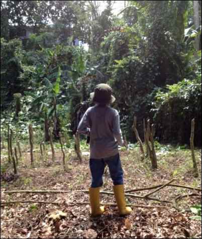 However, we realized that, unlike our other dog (who would just run away if we let him walk with us to the fields), Peka would stay with us all the time when planting or checking on my husband’s plantain field. She would guard the kids and prey on iguanas that came close to the field. So, we took her on our walks there and enjoyed her company, feeling safer when she was around.