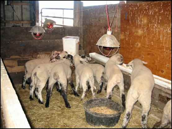 Each year we build a creep pen in the barn. This is a small pen to which only lambs have access. In this pen, they have free access to both corn and hay without competition from the mature sheep. We also feed our bottle lambs their milk in this pen so that they gradually become part of the flock. We hang heat lamps in the creep pen to encourage all lambs to use it. In a remarkably short time, the only way to recognize the bottle lambs is by their response to a milk bucket. Reaching this point is our goal and marks our success in raising bottle lambs.