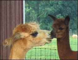 She explained how the other alpacas will pop their heads up and look around when they hear that sound. Rarely, a female, if she is an alpha female, will copy the alarm to help in warning the others, but one sound only the male makes is an orgle, which is a braying sound that is his love song to his mate. In fact, the male makes this sound during the entire mating process, otherwise, the female will not conceive. Due to this characteristic, they don’t respond to induced ovulation.