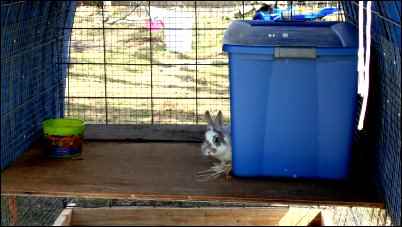 Rabbits quickly learn to balance atop the 2×4 wire, but care must be taken not to catch their legs and break them. We rushed one time and injured a kit’s leg. Fortunately, he recovered quickly, but it made us much more careful in the future.