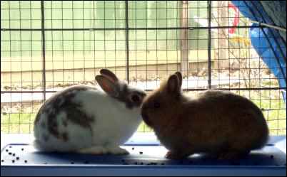 Contrary to popular belief, multiple rabbits can get along very well together, especially when they have ample room to move. We housed does together, bucks together, and does and bucks together. The does kindled and shared feeding responsibilities with no fighting or territory concerns. They also enjoyed snuggling together during nap time
