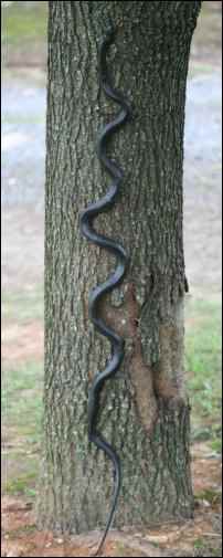 Black snakes used to be put in corn cribs because of their ability to swallow just about anything whole; especially rats after fresh corn. These snakes are known for climbing trees, but when it’s time to come down, they just roll up and fall out, being unable to climb down. Folks in the backwoods tell stories about black snakes choking people to death. Make one mad and he’ll run at you with his head up; if he catches you, he’ll get around your neck and choke you.