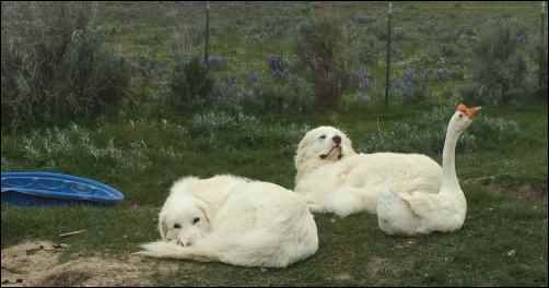 The geese would sometimes notice things before the dogs and would honk. An eagle, hawk, fox, stray dog on a distant hill, would get the geese honking. The dogs responded every time to the geese when they would honk. When the dogs would bark at something before the geese noticed it, they would start honking.