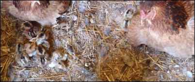 If you have a hen that turns out to be a little psycho, who tries to take your hand off when you reach into the nest, you may want to wear leather gloves. I’ve had a few psycho-hens. I put up with it, because they’re usually excellent mothers, extremely good at protecting the chicks. They’re just being good moms.