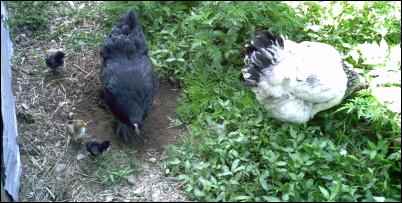 The two biggest pitfalls of having the mom and new chicks out with all the other chickens, are chicks drowning in water pans or buckets; and chicks going outside with mom, and being unable to get back into the coop. If there are steps that the new chicks can’t negotiate, a wide board you can place as a temporary ramp will solve the problem. If you need a ramp or other aid to help chicks get back inside, be sure and check in the evenings to see that they made it back in. Most of the time, if a chick is stuck outside, they’ll be cheeping in distress, making it easier to find and rescue the chicks. You may have to do this daily for the first few days.