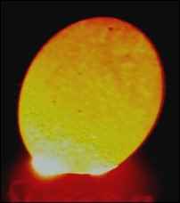 The egg on the left has a good, strong shell. The shell is a fairly even thickness, no mottled or thin patches, no cracks. In this photo, the top appears darker because of the placement of the light. When turned other-end-up, the color shading looked the same. A little variation is ok, just avoid obvious weak areas, as seen in the right.
